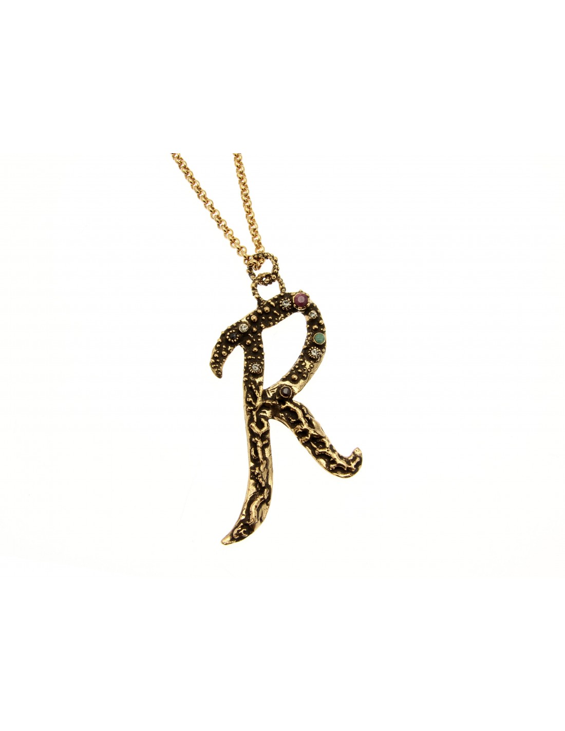 Collar de latón dorado con rubíes, esmeraldas, zafiros, granates, Swarovski