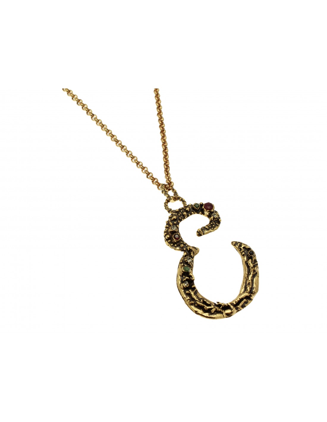 Collar de latón dorado con rubíes, esmeraldas, zafiros, granates, Swarovski