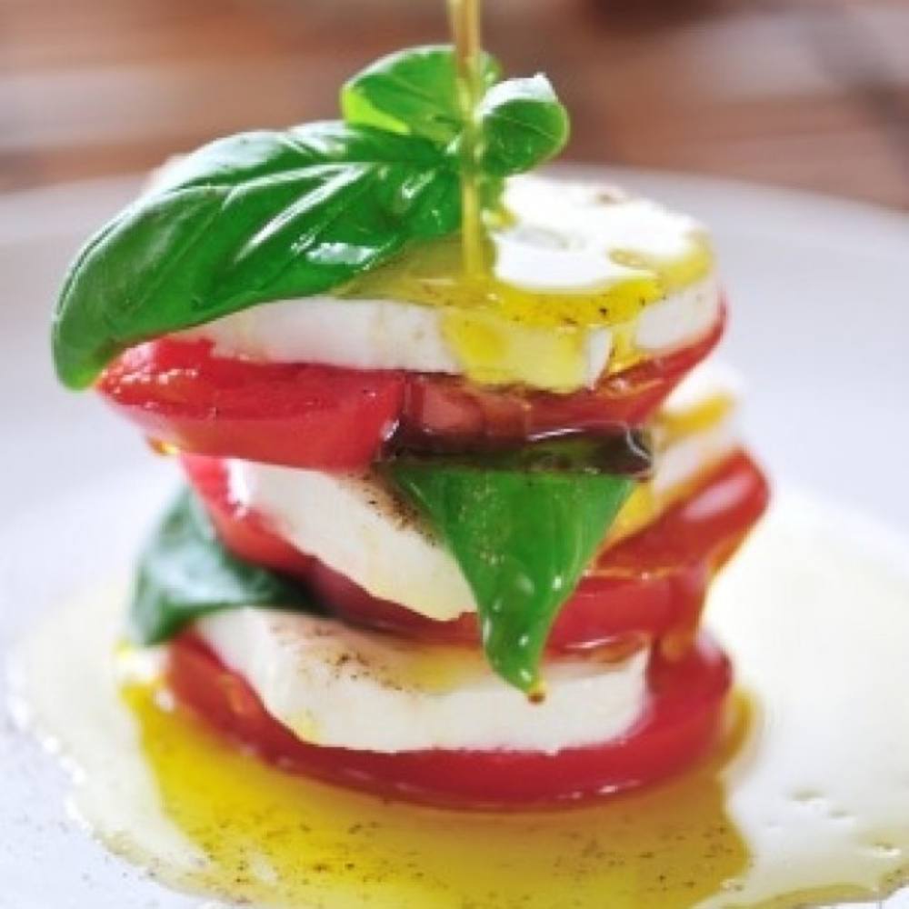 Tomate manzano, mozzarella fresca, albahaca y aceite de oliva.
