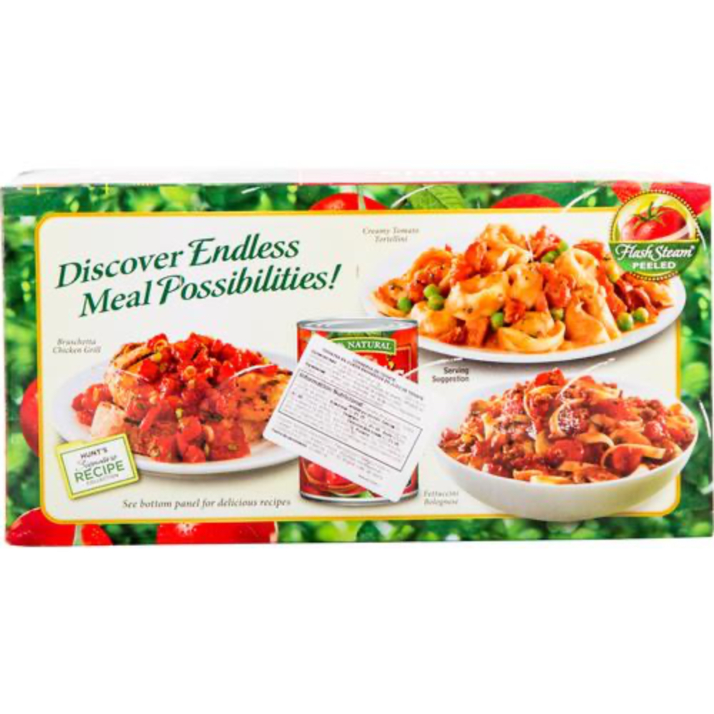 Disfruta del delicioso sabor de los tomates picados Hunt's. El sabor de los tomates madurados en la planta Hunt's realza las pizzas, las cazuelas, los guisos y el chile con carne.
