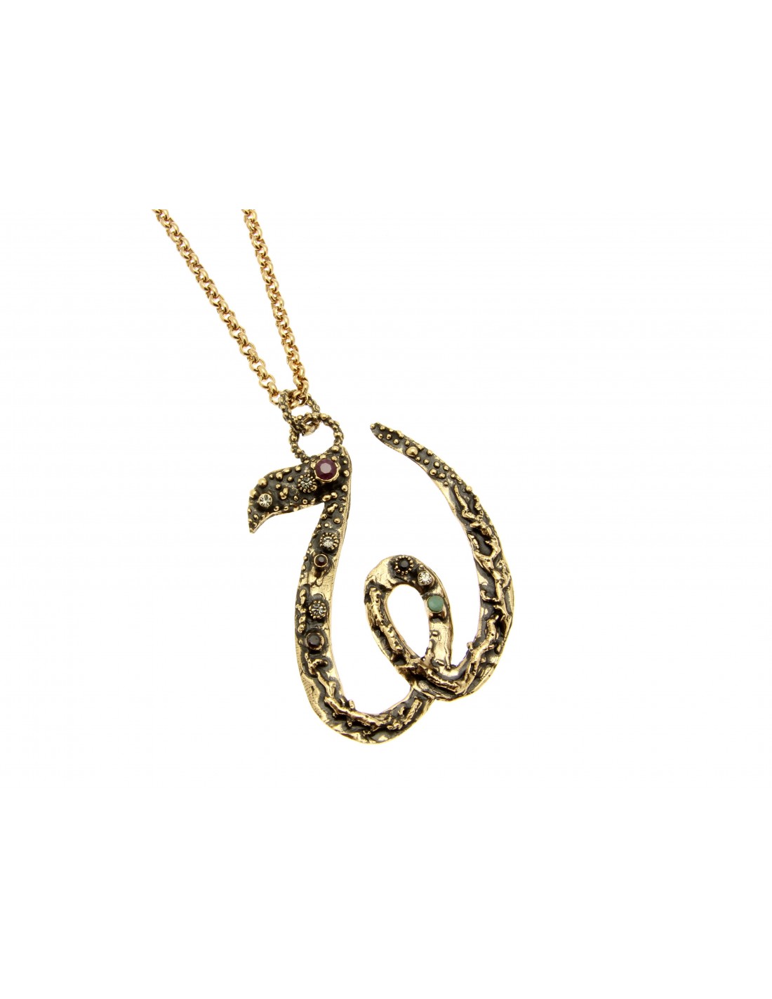 Collar de latón dorado con rubíes, esmeraldas, zafiros, granates, Swarovski