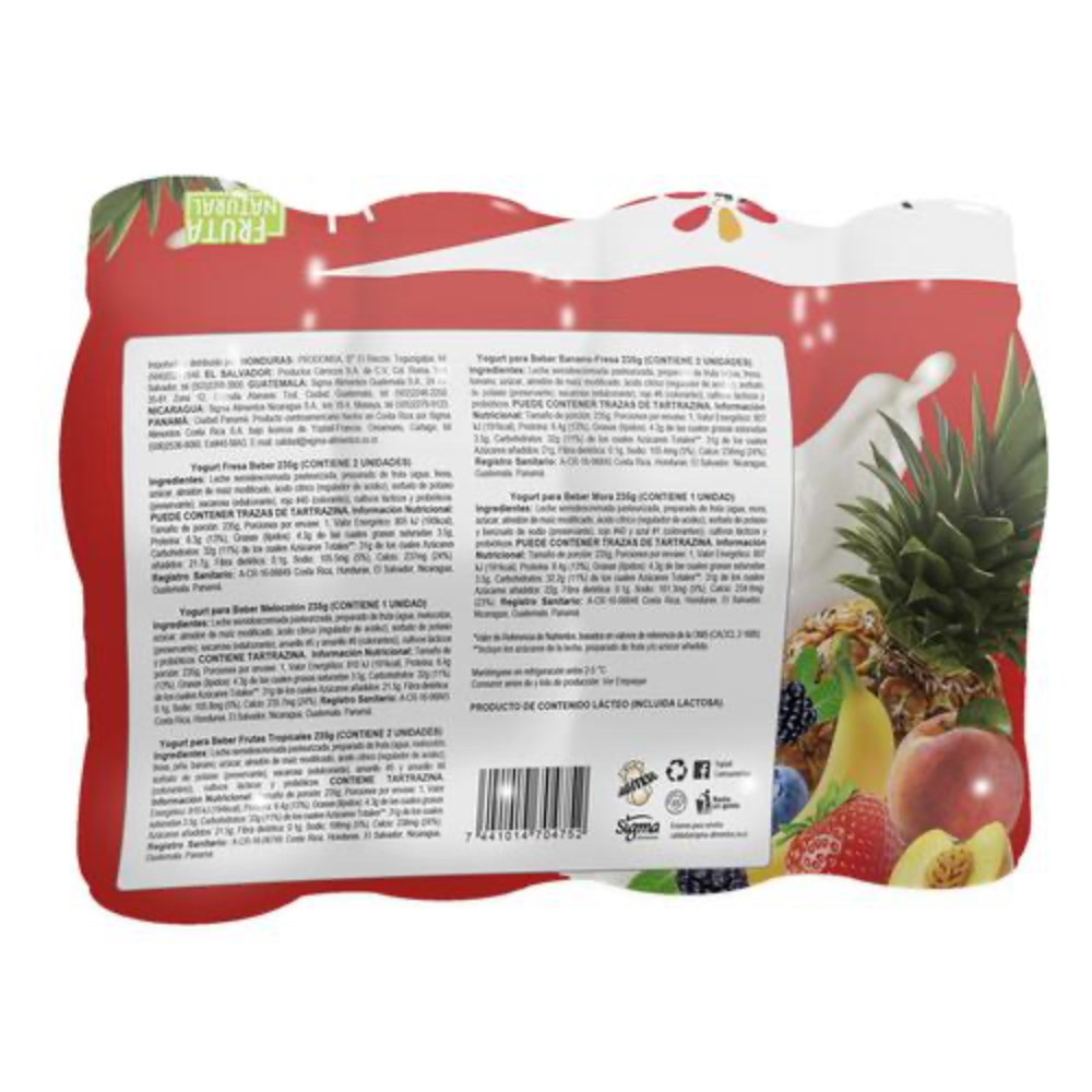 Yogurt con probióticos BB-12 y hecho con fruta natural.